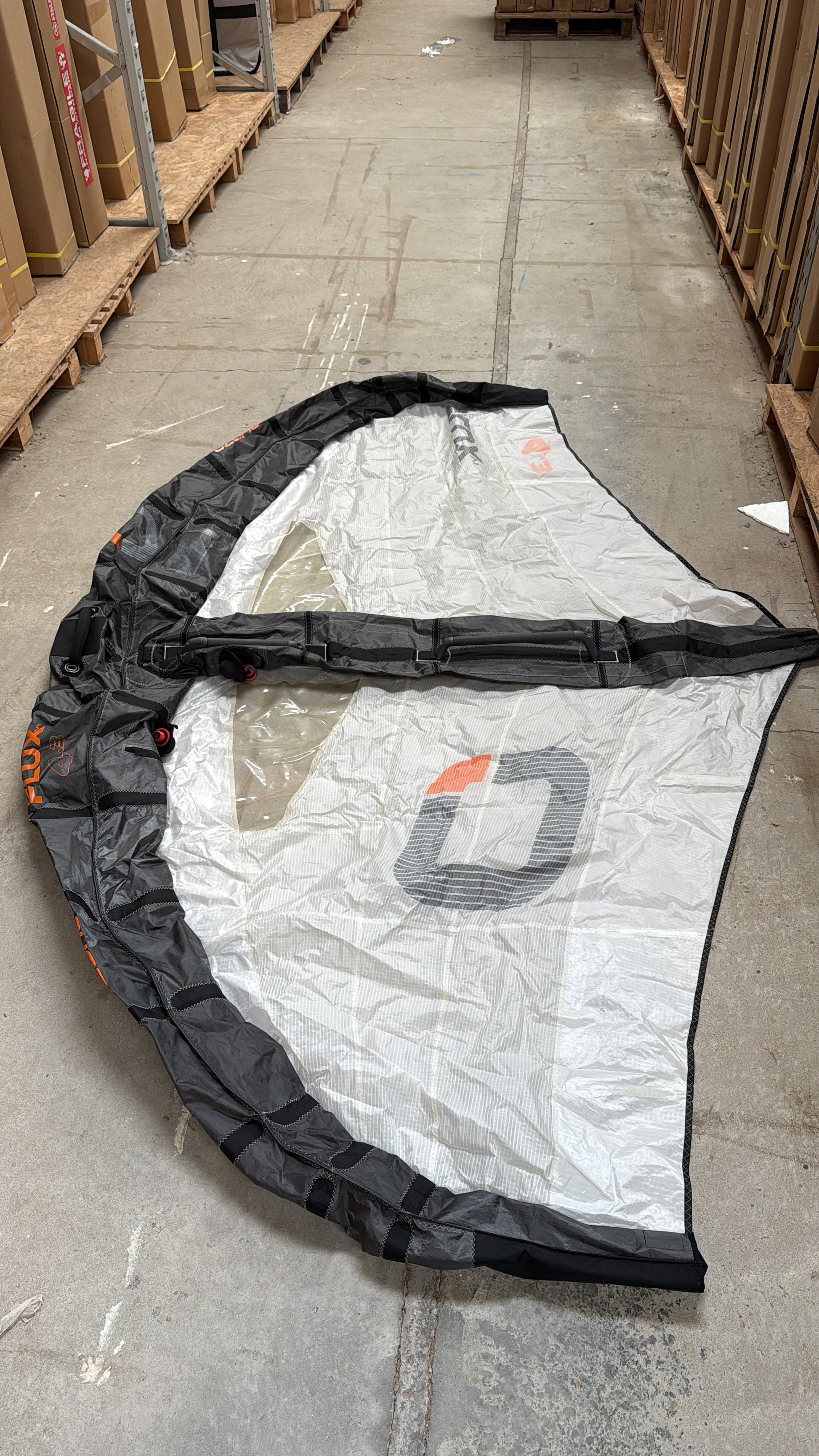 This is an ex demo Ozone Flux V1 4.3m wing. It has been fairly well used but is in good condition. There is a small canopy repair.